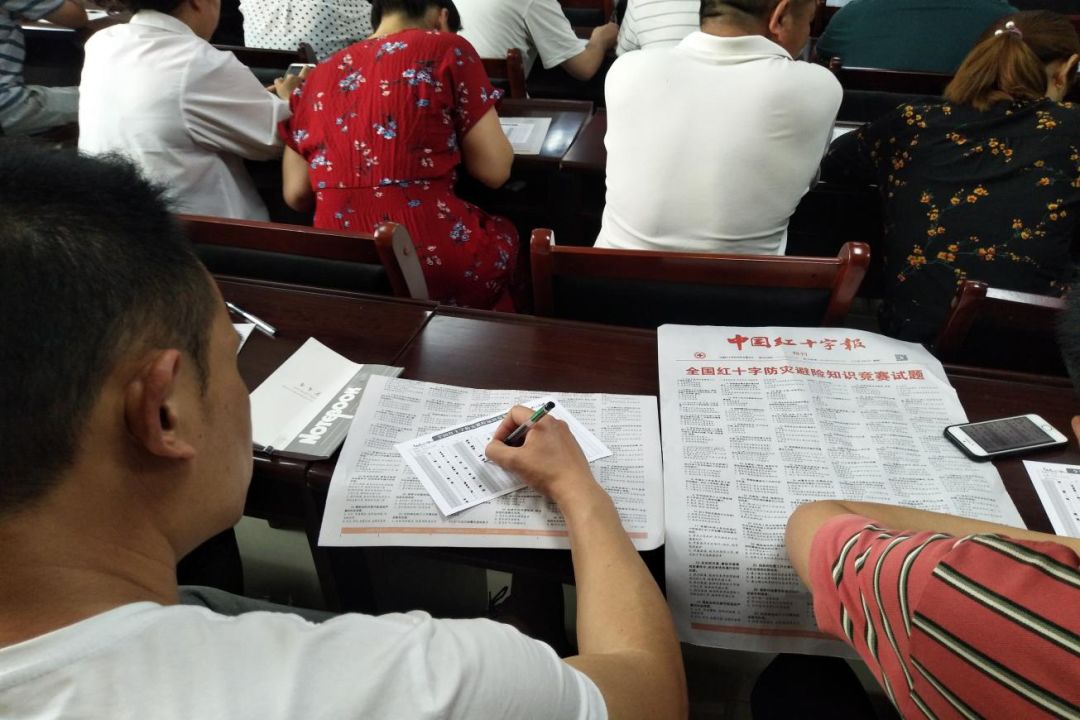 活动首先,由县红十字会会长孟令喜为大家普及了防灾避险常识,巩固了大家的知识基础。接下来,在知识竞赛环节中,红十字志愿者为大家发放了中国红十字报特刊,邀请大家共同参与竞答《全国红十字防灾避险知识竞赛试题》。本套测试题共有100道单项选择题,大家根据竞赛前普及的相关知识进行了认真作答并在答题卡上填写了相关信息。