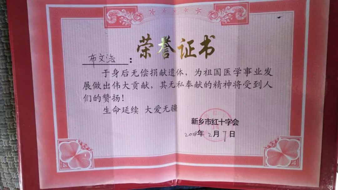 布文浩是我市第18位遗体捐献者,他的名字将镌刻在新乡市遗体(器官)捐献纪念苑的纪念碑上,供世人缅怀纪念,感恩他为祖国医学事业做出的贡献。