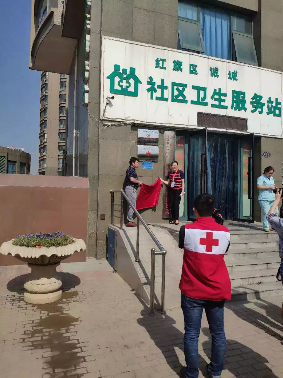 在当天的启动仪式上,市红十字会常务副会长马云、秘书长刘继英,红旗区卫计委、区红十字会领导、洪门镇人大主席团副主席李久利等出席,诚城社区志愿者和居民以及红十字义工之家志愿服务队队长毛山林和志愿者代表约100人参加。仪式由诚城社区党委副书记、主任李凤林主持,马云副会长、和献峰副主任分别讲话;马会长向城诚社区红十字志愿服务队队长进行了授旗;红十字志愿者进行了集体宣誓;仪式现场向社区五名困难群众发放救助金5000元。此项仪式结束后,与会人员参观了诚城社区红十字博爱角、举行了诚城社区红十字工作站揭牌仪式,区红十字会安排了首期培训活动,邀请培训师李帆老师对红十字志愿者进行了应急救护知识培训。