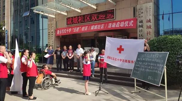 红十字“五进”社区工作是2018年省、市红十字会确定的一项重点工作,主要内容是在社区开展红十字应急救护及防灾避险知识培训、慢性病防控干预、养老照护知识普及、人道救助、红十字精神等“五进社区”活动。通过此项工作的开展,发挥红十字会的独特优势,适应社区群众的需要,参与我市健康社区、文明社区、幸福社区建设。新乡市红十字会认真落实河南省红十字会五届五次理事会和《“红十字进社区”行动计划工作方案》要求,积极推进我市的红十字进社区工作。我市选择红旗区诚城社区和牧野区荣校路社区两个明星社区为试点社区,在对两个社区充分调研座谈的基础上,专门制订了《新乡市红十字会“红十字进社区”行动计划工作方案》,并按照方案积极推进各项工作。试点社区均成立了社区红十字会,设立了1个为基层群众健康服务的红十字工作站、1个宣传红十字知识并为社区群众提供便民服务的博爱角和1支服务基层群众的红十字志愿服务队。