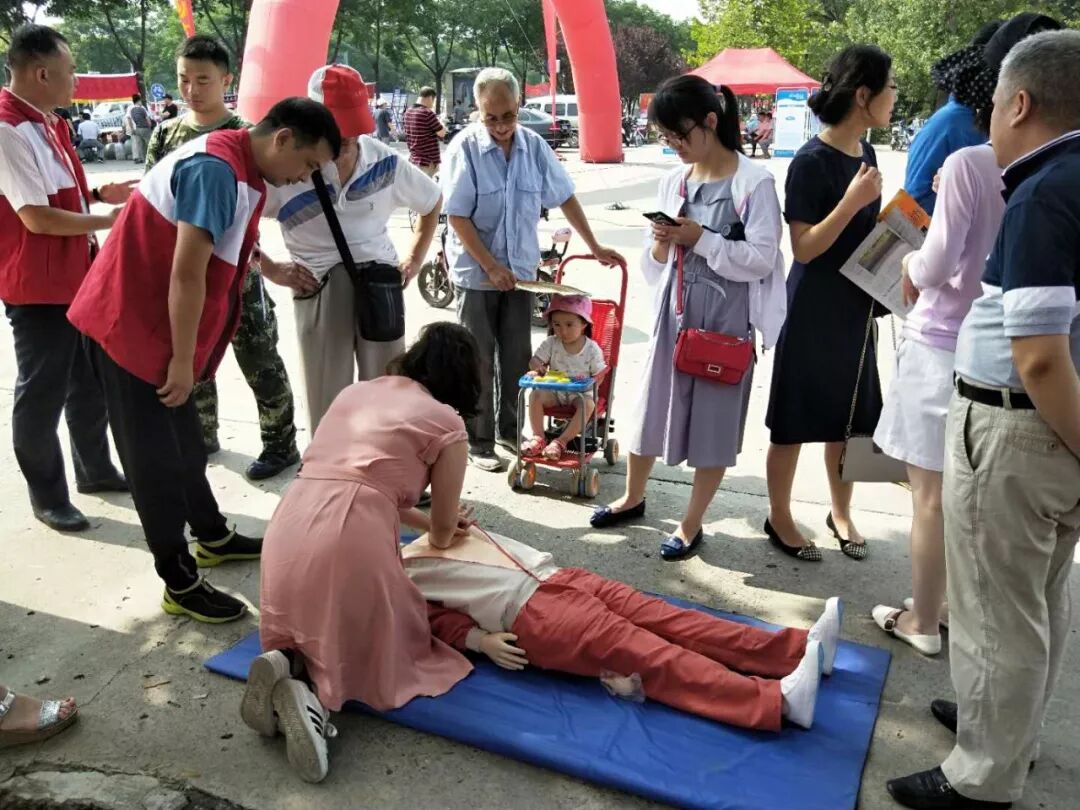 市红十字会积极参与活动,通过发放宣传册、悬挂横幅等方式宣传红十字、应急救护、平安建设等相关知识,内容包括:红十字运动知识、造血干细胞捐献知识、遗体(器官)捐献知识、应急救护知识、心理援助知识等。红十字会工作人员还利用模拟人现场向群众演示并讲解心肺复苏急救操作,普及急救知识。不少群众前来学习,并在老师指导下进行操作。
